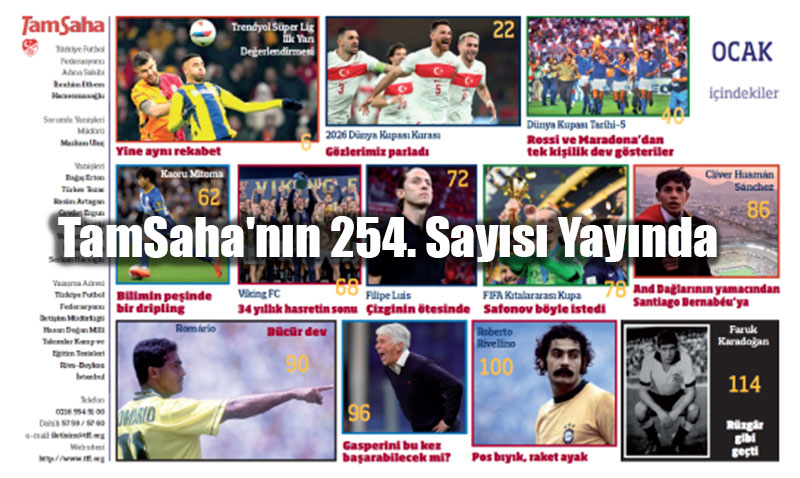 TamSaha dergisinin 2026 Ocak sayısı yayında. Dünya ve Türkiye futbolunun gündemindeki konuları ele alan derginin 254. sayısı da dopdolu.